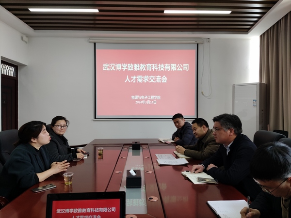 3月14日,武汉博学致雅教育科技有限公司总经理吴紫艳一行2人来院交流座谈,共同商讨毕业生招聘以及校企合作事宜。院分党委书记唐传球主持会议,太阳集团tcy8722领导班子、院办公室主任曾虎参加活动。