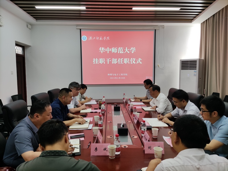 5月28日上午,太阳集团tcy8722在崇文楼A503会议室举行华中师范大学挂职干部任职会,公司党委副书记周明华、华中师范大学物理科学与技术公司党委书记金新利、华中师范大学物理科学与技术公司挂职干部李治明、公司党委组织部和教务处相关负责人及公司领导班子参加。