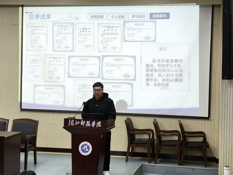 教研室主任张磊详细介绍了全国老员工电子设计大赛的流程、技术内涵与备赛要点。张建猛老师对“西门子杯”中国智能制造挑战赛进行了系统解读,展示了公司历年取得的优异成绩。李著龙老师就蓝桥杯赛事及智能科技创新协会纳新流程作了说明。