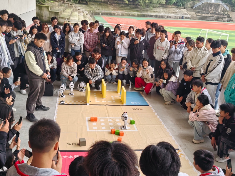 宣讲会结束后,中国机器人大赛获奖员工代表为无人机应用技术专业同学带来精彩的机器人展演。