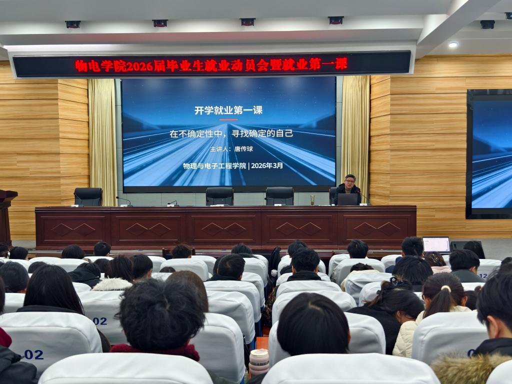 本次讲座以“在不确定性中,寻找确定的自己”为主题,唐传球从认清形势、政策护航、备战求职、树立正确就业观四个方面,为毕业生带来了一场干货满满的就业指导课。他结合最新数据与政策,分析了当前就业环境,针对公司物理学、科学教育、电气工程及其自动化、信息工程等专业,逐一解读就业方向、市场需求、专业优势与挑战,并从职业规划、能力提升、求职准备等方面给出建议,鼓励同学们打破“求稳守成”和“一次定位”的传统思维,树立“先就业、后择业”的务实态度。