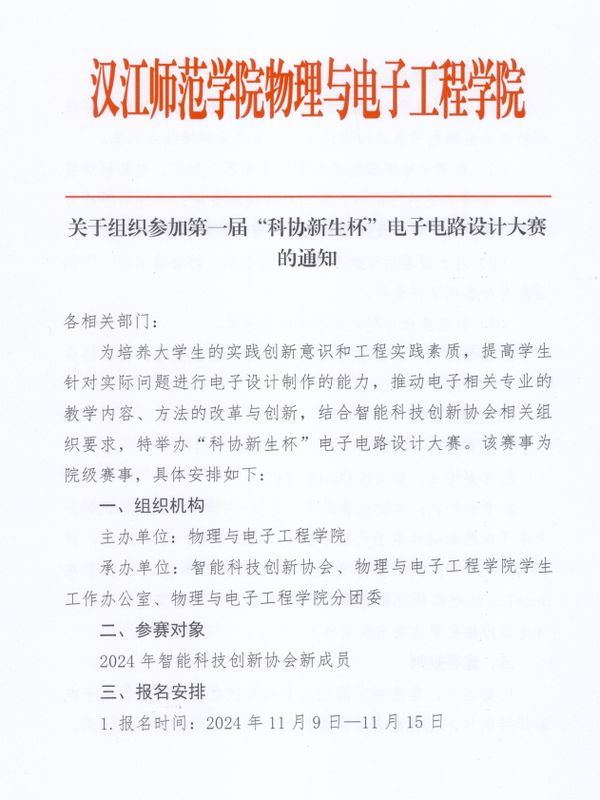 关于组织参加第一届“科协新生杯”电子电路设计大赛的通知