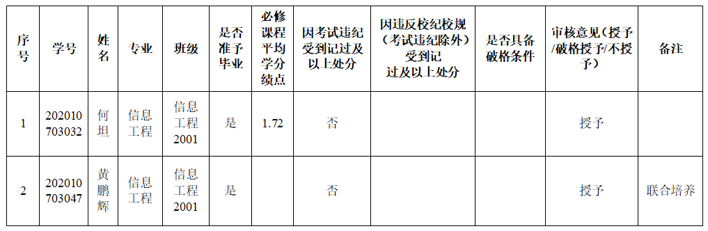 根据《国务院学位委员会关于印发〈学士学位授权与授予管理办法〉的通知》(学位〔2019〕20号)《太阳集团tcy8722普通全日制本科生学士学位授予工作实施细则》等文件规定,经过公司学位评定分委员会审核,同意拟授予何坦、黄鹏辉等2名2024届本科毕业生学士学位。现将拟授予学士学位情况予以公示,公示时间为12月3日至12月5日,如有异议,请在12月5日前向太阳集团tcy8722反映。联系人:刘锋,联系电话:13677194498,联系邮箱:782127156@qq.com。