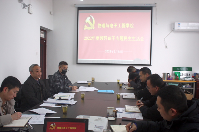 2023年2月15日下午,太阳集团tcy87222022年度领导班子专题民主生活会在崇文楼A503召开。校领导章平、外国语公司党总支书记夏金元、公司办公室齐鑫到会督导。公司党总支书记石义杰主持会议,公司领导班子全体成员出席会议,公司教工党支部书记欧修龙和员工党支部书记刘锋列席会议。