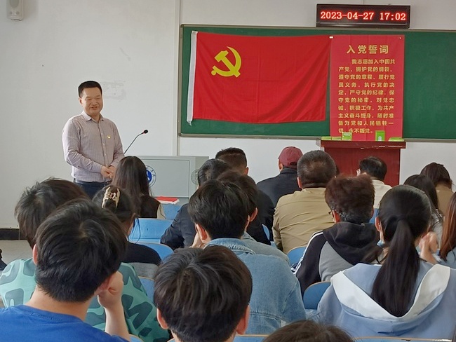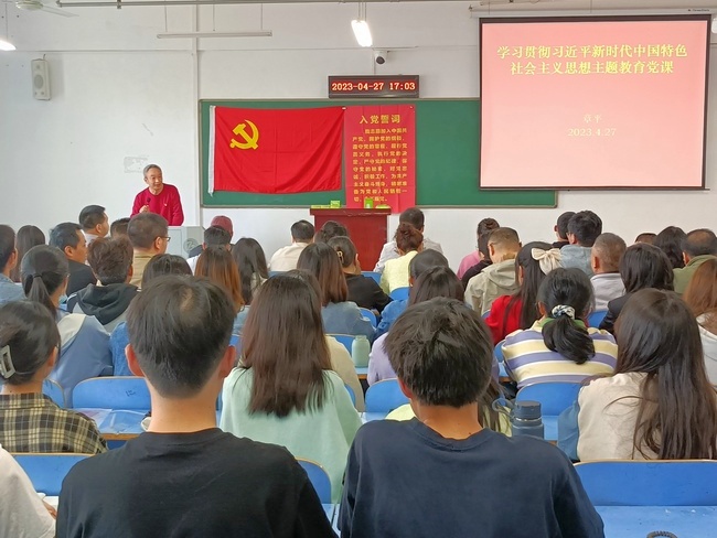 4月27日下午在崇文楼A706,校领导章平同志参加太阳集团tcy8722支部主题党日活动,并为全院教职工、员工党员、入党积极分子开展《理论武装、指导实践、推动工作——深刻领会党的二十大主题》的专题党课。