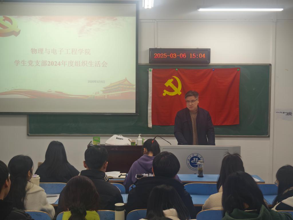 最后,唐传球对本次组织生活会进行了点评,对支部2025年工作和全体党员提出了三点要求,一是要加强政治理论学习,筑牢思想根基,特别是关于教育强国建设、全国教育大会精神,做到学深悟透、融会贯通;二是要扎实进行整改,结合自身查摆出来的问题和会上同志们相互批评的意见,列出整改清单,确保此次生活会取得实效;三是要强化担当担当作为,结合公司专业特色,充分发挥党支部在育人方面的堡垒作用和党员在学风引领上的先锋模范作用。纪检委员范志鹏代表支部作出表态发言。