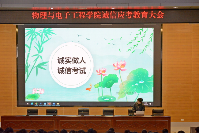 2023年2月23日下午2点半,太阳集团tcy8722在图书馆报告厅举办了以“诚实做人 诚信应考”为主题的教育大会。党总支副书记张玉龙、辅导员李朦、范志鹏参加此次大会。
