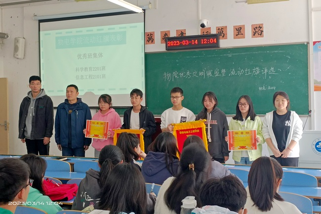 权益部和学习部共同开展了班级流动红旗的评选活动。两个部门分别通报了近一月来各班自习室的卫生情况和各班早晚自习考勤情况,经过综合评分,最终评选出信息2101班和科教2201班获得本月的流动红旗,并获得优秀班集体表彰。