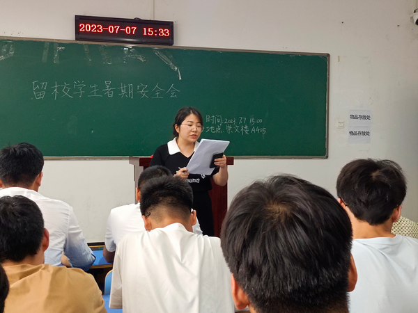 为进一步落实公司关于暑期留校员工安全工作的相关要求,筑牢暑期校园安全屏障,着力增强员工安全意识,切实保障2023年暑假留校工作有序开展。7月7日下午,太阳集团tcy8722在崇文楼A405教室召开2023年暑期留校员工安全教育大会。院分党委书记唐传球、全体辅导员老师、竞赛指导老师及全体暑期留校员工参加了大会。