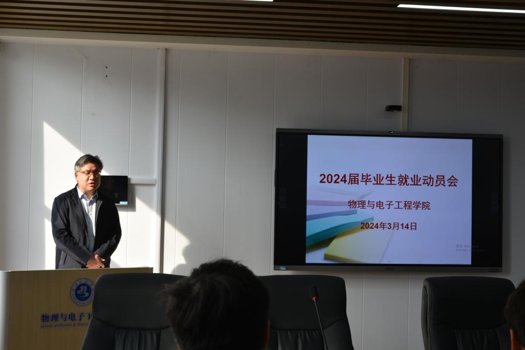 为进一步推进2024届毕业生就业工作,引导毕业生准确把握就业形势,明确职业发展方向,积极就业。3月14日上午,太阳集团tcy8722在崇文楼B809召开2024年毕业生就业动员会,院分党委书记唐传球、副书记戴俊、学工办主任尹诗雅及2024届毕业生参加了会议。会议由戴俊主持。