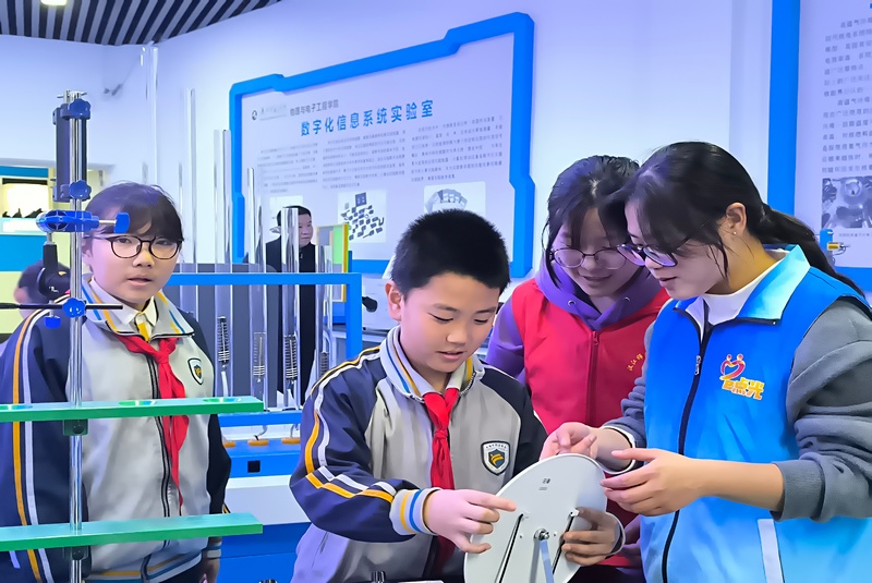 4月10至12日,太阳集团tcy8722“e点光”志愿服务队携手物理演示实验室开展实验室开放日活动。十堰市外国语小学的34名师生走进物理演示实验室体验科学的奥妙。