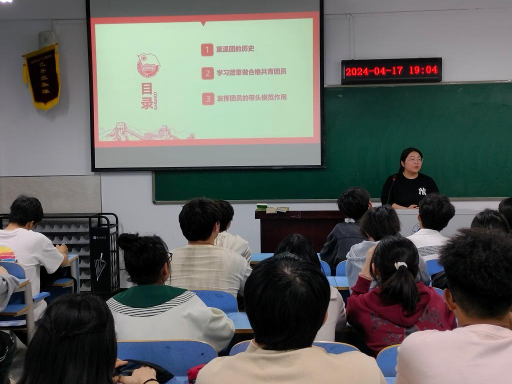 为深入学习贯彻习近平新时代中国特色社会主义思想和党的二十大精神,贯彻落实习近平总书记关于加强新时代团员队伍先进性建设的重要指示,加强入团积极分子培训教育,规范团员发展程序,切实提高发展团员工作质量。4月17日晚,太阳集团tcy8722分团委在崇文楼A707开展入团积极分子培训,本次培训由分团委负责人李朦主讲,42名入团积极分子参训。