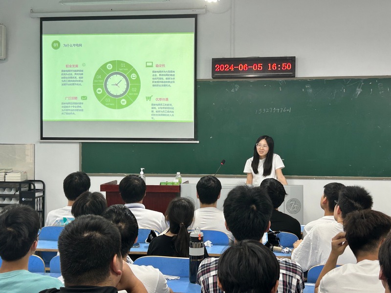 王凯为物理学专业同学分享了教师编制考试方面的经验,他围绕笔试准备、面试练习、资料的检索与搜集等方面,为在场同学详细地介绍了考编的过程与注意事项和相关经验。王玲结合国家电网考试经历,向电气工程及其自动化专业的学弟学妹们重点介绍了志愿选择和调剂、考试专业课的备考策略、进程安排、面试的种类和练习方法等内容,分享自己备考过程中的经验教训,帮助同学们提前“避雷”。