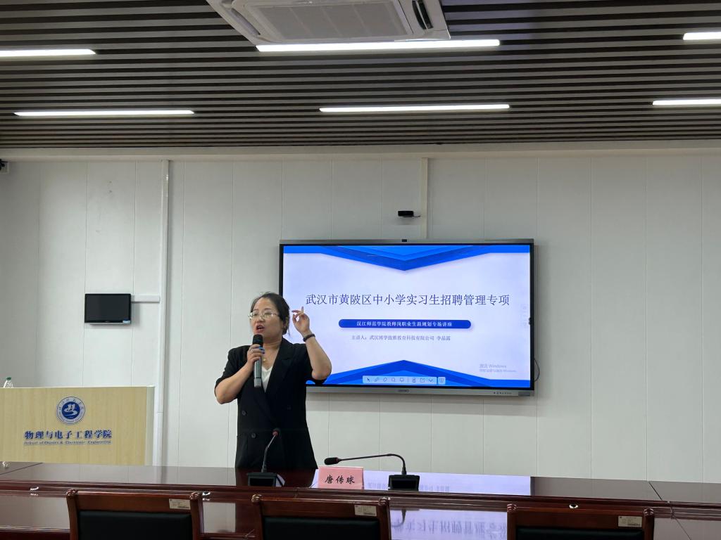 主讲人肖老师从教育行业发展趋势、教育领域的人才竞争、公立公司教师的职业特点以及教师职业规划前景四个方面,为公司21级师范生详细解读了教师职业的现状和发展前景。她结合武汉市及周边中小学实际,介绍了当前公办公司教师队伍的构成及招聘情况,包括公立公司的择人标准、派遣教师招聘形式和流程、薪资福利等信息。专家黄老师以武汉市黄陂区中小学实习生招聘管理为例,深入剖析了科学教育发展前景,为有志于从事科学教育工作的师范生提供了宝贵的建议。
