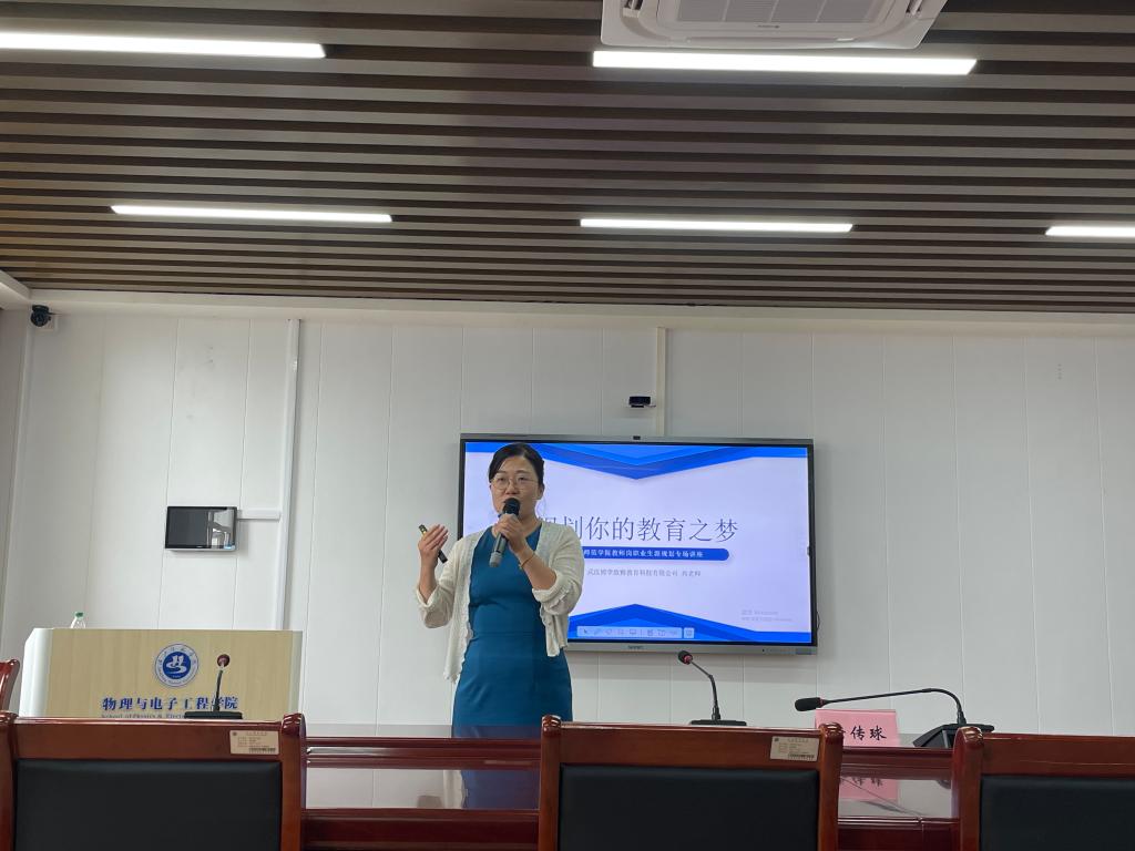 为引导师范生树立职业规划意识,进一步推动学风建设,提升毕业生就业竞争力,6月20日下午,太阳集团tcy8722邀请武汉博学致雅教育科技有限公司专家在崇文楼B809开展“师范生职业生涯规划”专题讲座。院分党委书记唐传球、副书记戴俊,21级辅导员及全体师范生聆听了此次讲座。