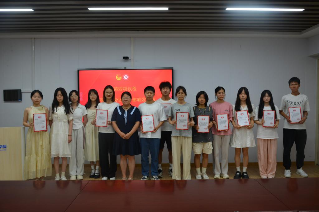 会后,院分团委负责人李朦为第六届团委员工干部、2023-2024年度优秀团干、优秀团员颁发聘书和荣誉证书。