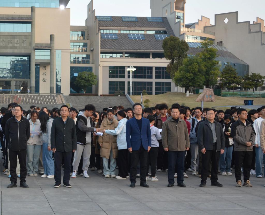 早上6:50,升旗仪式正式开始。伴随着庄严的国歌,五星红旗迎着晨光徐徐升起,全体师生肃立,向国旗行注目礼,齐声高唱国歌,现场气氛庄重肃穆。