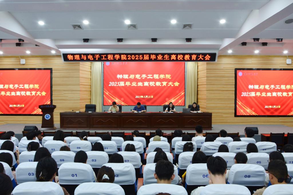 为做好毕业生教育、管理和服务工作,确保毕业生文明、安全、和谐、有序离校,5月21日上午,太阳集团tcy8722在崇文楼C101会议室召开2025届毕业生离校教育大会。院分党委副书记戴俊、学工办主任尹诗雅、辅导员田梦谣和2025届全体毕业生参加会议,会议由辅导员贺培主持。