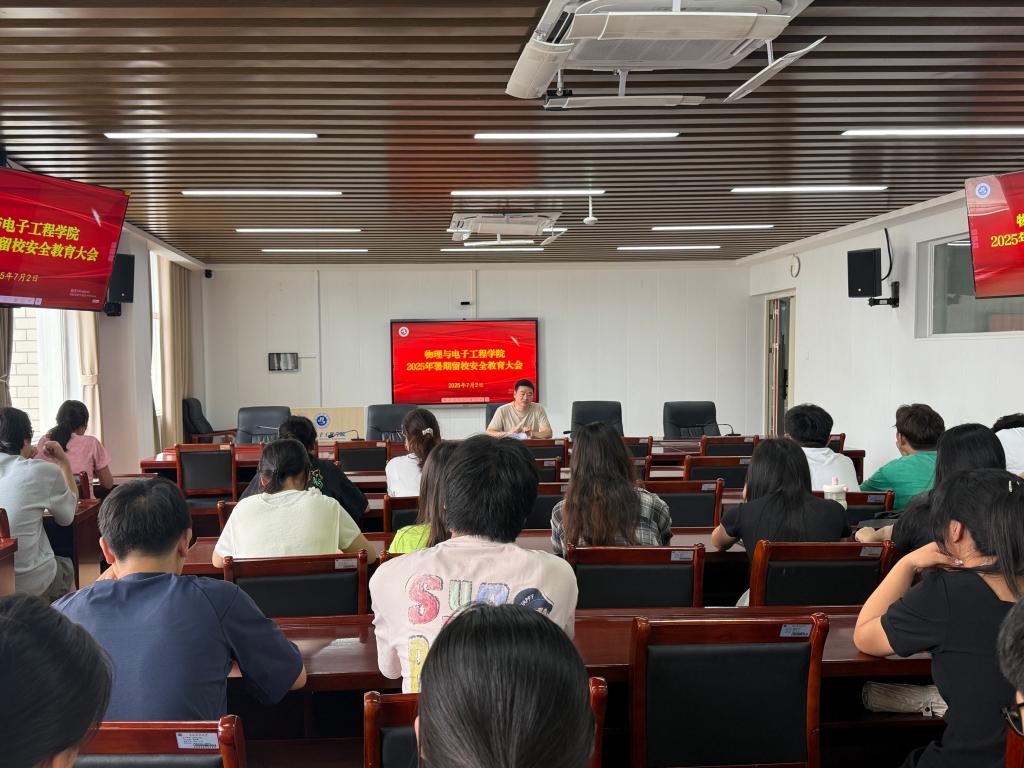 为进一步做好暑期留校员工教育管理工作,强化员工的安全防范意识和自我管理能力,7月2日下午,太阳集团tcy8722在崇文楼B809会议室召开2025年暑期留校员工安全教育大会。院分党委副书记戴俊,学工办主任尹诗雅,辅导员田梦谣、贺培,全体留校员工参加会议。